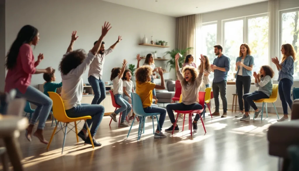 Musical Chairs is the grandparent of elimination party games. You need one fewer chair than players, some music (any phone speaker works), and about three minutes per round. Players walk around the chairs while music plays: when it stops, they scramble to sit. Whoever’s left standing is out, and you remove another chair.